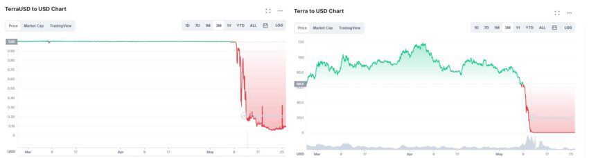 В начале мая 2022 года алгоритмический стейблкоин экосистемы криптопроекта Terra – TerraUSD (UST) потерял привязку к базовому активу – доллару США. В результате курс «стабильной монеты» опустился до $0. Следом за UST ко дну пошел нативный токен Терра – криптовалюта LUNA. На фоне обесценивания монет, их инвесторы претерпели убытки.