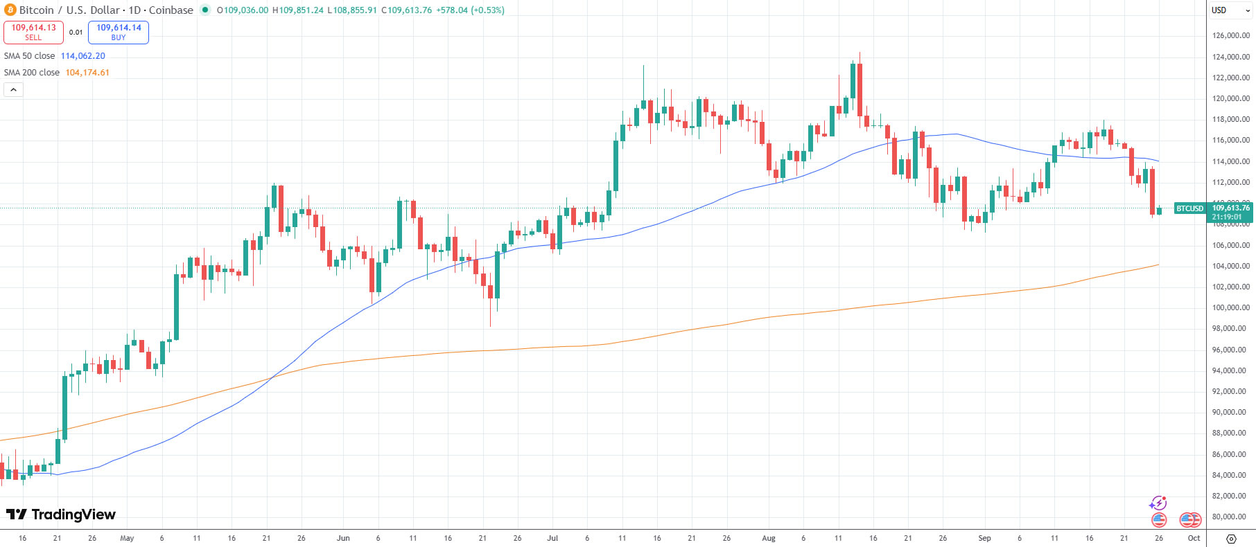 Цена еще не опустилась до $107 500, как это было 1 сентября, но аналитики говорят, что движение в этом направлении может быть именно таким.